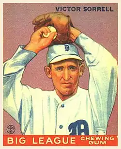 Victor Garland Sorrell (April 9, 1901 – May 4, 1972), nicknamed "Lawyer" and "the Philosopher", was an American Major League pitcher who played his entire career with the Detroit Tigers. In 10 Major League seasons, Sorrell had a 92–101 record with a 4.43 career ERA. Sorrell also coached the North Carolina State University baseball team from 1946 to 1966.