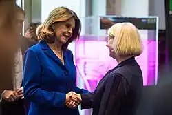 Vice President and Minister of Foreign Affairs Marta Lucía Ramírez with Deputy Administrator of the National Aeronautics and Space Administration Pamela Melroy.