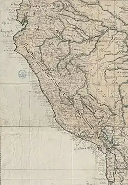 The Viceroyalty of Peru on the South America map made by Agustín Ibáñez y Bojons in 1800.