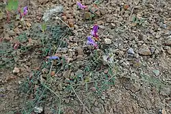 Vicia palaestina, the Palestine vetch, is a species of flowering plant in the family Fabaceae. It is native to the eastern Mediterranean region; Greece, the Aegean Islands, Turkey, Cyprus, the Levant, Sinai, and Iraq.[1] Carbonized remains of its seeds have been tentatively identified in Mousterian Neanderthal deposits in Kebara Cave, Mount Carmel, Israel.[2] Unlike many species of vetch, its seeds are non-toxic, and are edible even when raw.[3]