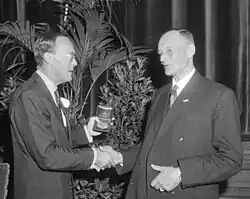 After his return to the Netherlands, Koningsberger assumed several leadership roles in academic institutions. From 1951 through 1965, he served as the Chairman of the Royal Tropical Institute; in recognition of his service in this capacity, he received a medal from Prince Bernhard of Lippe-Biesterfeld in 1965. Between 1952 and 1953, he served as the rector of Utrecht University.[13] Having become a member of the Mathematical and Physical Sciences division of the Royal Netherlands Academy of Arts and Sciences in June 1948, Koningsberger remained an active member of the academy for the rest of his life. He served as chairman of the Biological Council,[1] in which capacity he promoted the continued use of biology in high school final examinations,[12] and as a member of the Central Bureau for Fungal Cultures. Between 1960 and 1965, he served as the Deputy Chairman of the academy's Mathematical and Physical Sciences division.[1]