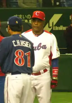![]() Mesa as a manager of the Cuba national team in 2013 World Baseball Classic | |