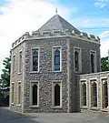 The foundation stone of the school was laid on Queen Victoria's birthday, 24 May 1850. Most shops in Saint Helier closed for the day and 12,000 spectators were estimated to have attended the occasion. A military parade crossed the town of Saint Helier to the site of the ceremony, followed shortly afterwards by the members of the States of Jersey who adjourned the legislative sitting to attend. The Lieutenant-Governor of Jersey joined the dignitaries at the Temple in the grounds of the site. The Bailiff of Jersey laid in the foundations a box containing copies of the Acts of the States relating to the college, Jersey coins, and two medallions, one of silver, the other of bronze, depicting the arrival of Queen Victoria and Prince Albert in Jersey in 1846, and a copper plate engraved with an inscription of the date of the founding of the college and the names of States Members, Officers of the Royal Court and the architect. With the foundation stone, carved with Masonic symbols, in place, the Lieutenant-Governor ceremonially laid the stone by striking it with a trowel. All the Members of the States in turn then proceeded to tap the stone with a mallet three times.[12]
