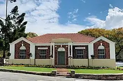 The park was again reduced by the construction of Victoria Park Golf Club. In the 1920s, municipal golf courses were being established throughout Australia and in 1922 the Queensland Golf Association proposed to the Lord Mayor of Brisbane, William Alfred Jolly, that a municipal golf course be established in Victoria Park. In 1926 the proposal was accepted. The opportunity came after the section of Victoria Park, reserved as the intended site for the University of Queensland, was no longer required after the university acquired their St Lucia site from a generous donation of £63,000 to resume over 200 acres (81 ha) by James and Emelia Mayne.[3] The eighteen hole golf course was laid out by the surveyor Stan Francis, who was an ardent golfer. It was constructed during the Depression by men employed in the Intermittent Relief Scheme . The Victoria Park Golf Course was opened in 1931. The first Victoria Park Golf Clubhouse was designed in the Spanish Mission style by Alfred Herbert Foster and was built in 1931; it is now listed on the Queensland Heritage Register.[3]