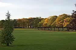 The park was historically part of the South Fields of Leicester, and was used from 1806 to 1883 as a racecourse – a function that was then transferred to the purpose-built Leicester Racecourse in Oadby. It was opened as a park in 1882. A Victorian grandstand stood in the park until the mid-20th century, and was used as a pavilion after racing moved to Oadby. It was damaged by a German parachute bomb in 1940 and later demolished, with the new pavilion built on the same site and opened in 1958.[1] Leicester Fosse (who later became Leicester City Football Club) played here on various occasions between 1884 and 1890.