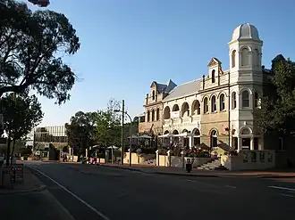 The Victoria Park railway station opened in 1898 following lobbying from the municipal council.[6] The following year, Broken Hill Hotel and the Town Hall were constructed, serving as both a community centre and as the council office for the municipal council until amalgamation with the City of Perth in 1917. The Town Hall was later demolished, while the Broken Hill Hotel is listed by the National Trust.