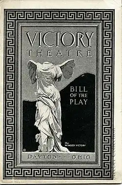 The Victoria, one of the oldest continually operated theaters on the continent, was opened to the public as the Turner Opera House on New Year's Day, 1866.[2] The first performance was the James Sheridan Knowles play Virginius, starring Edwin Forrest – the play was strongly associated with the famous actor.[3] According to press clippings of that era, the theater was referred to as "the best theater west of Philadelphia".[4] The theater's presence in Dayton even inspired the publishing of a musical march by Edward Spoth named after the opera house.[5]