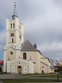 The landmark is the Church of Saint Catherine of Alexandria. It was originally a Gothic church, founded together with the town in the 13th century. Today's appearance is the result of Baroque and Neoclassical reconstructions. The last major reconstruction took place in 1883, when a neo-Gothic tower was added.[9]