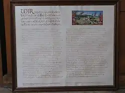Viehbach and other villages were in danger by the Duke of Marlborough during the War of the Spanish Succession in July 1704. The villages of Viehbach and Bachenhausen recorded the looting and fires around them. When their houses were miraculously saved from destruction, they vowed to hold a mass every year on St. Florian's Day (May 4) to commemorate their liberation. The Annunciation can still be seen today in the old village church in Viehbach.[7]