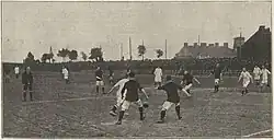 Glentoran, as winners of the Irish Cup in 1914, embarked on a tour of Central Europe in May and June of that year. After losing 4–3 to Deutscher FC in front of a crowd of 3000 in Prague on 21 May, only a few days after winning the Irish City Cup on 16 May. Prager Tagblatt considered the match the "best ever" in Prague.[5] Glentoran defeated Hertha Berlin on their ground 4–1 on 23 May.