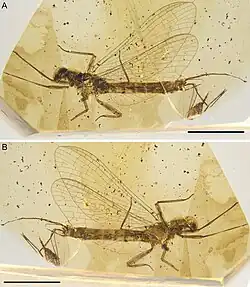 - ^ a b Godunko, Roman J.; Martynov, Alexander V.; Staniczek, Arnold H. (2021-05-10). "First fossil record of the mayfly family Vietnamellidae (Insecta, Ephemeroptera) from Burmese Amber confirms its Oriental origin and gives new insights into its evolution". ZooKeys (1036): 99–120. doi:10.3897/zookeys.1036.66435. ISSN 1313-2970. PMC 8128840. PMID 34040482.