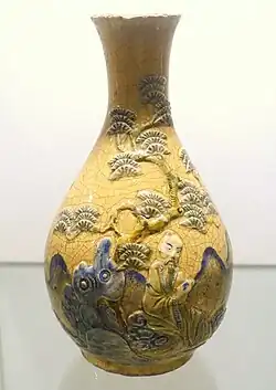 Much of Vietnamese pottery and ceramics after the Chinese-domination era was largely influenced by Chinese ceramics, but has developed over time to be distinctly Vietnamese.[1] Vietnamese potters combined indigenous and Chinese elements. They also experimented with both original and individual styles as well as incorporated features from other cultures, such as Cambodia, India and Champa.[2]