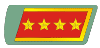 | Đại tướng | Trung tướng | Thiếu tướng | Đại tá | Trung tá | Thiếu tá | Đại úy | Trung úy | Thiếu úy | Chuẩn úy | |||||||||||||||||||||||||||