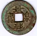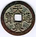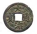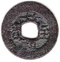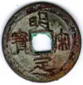 The first cash coins of the Lý dynasty produced during the reign of Emperor Lý Thái Tổ were the Thuận Thiên Đại Bảo (順天大寶), these were among the largest early Vietnamese cash coins with a diameter of 25.5 millimeters.[19][20] All known variants of this cash coin feature the Chinese character Nguyệt (月) on the top of their reverse sides.[19]