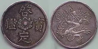 - ^ a b c d Gillingham, Harrold E. (Harrold Edgar), 1864-1954 (1928). "Notes on the decorations and medals of the French colonies and protectorates. § Annam - Kim-Tiên, or Sapèque in gold 44 & Ngân-Tiên, or Sapèque in silver 45". American Numismatic Society. Retrieved 24 March 2021.