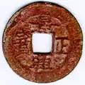 Generally cast coins produced by the Vietnamese from the reign of Lý Thái Tông and onwards were of diminutive quality compared to the Chinese variants.[21] They were often produced with inferior metallic compositions and made to be thinner and lighter than the Chinese wén due to a severe lack of copper that existed during the Lý dynasty.[22] This inspired Chinese traders to recast Chinese coins for export to Vietnam, which caused an abundance of coinage to circulate in the country, prompting the Lý government to suspend the mintage of coins for five decades.[22]