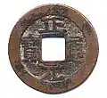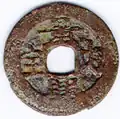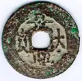 The first Vietnamese coins were cast under the rule of the Đinh dynasty (968–981) with the introduction of the Thái Bình Hưng Bảo (太平興寶) under Đinh Bộ Lĩnh.[16] Likewise the only inscription cast during the Early Lê dynasty period bore the inscription Thiên Phúc Trấn Bảo (天福鎮寶).[15][17] However, for the next two centuries coins would remain a rarity in the daily lives of the common people, as bartering would remain the dominant means of exchange under both the Đinh and Early Lê dynasties.[18]