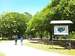 The park features include a huge Buddha statue which replaced the statue of Queen Victoria which originally stood there, and a series of water fountains. It also includes a mini zoo, a children's play area and a BAC Jet Provost.[3] There are Muscovy ducks in the park. They swim in the artificial lake and walk on the grass beside it.[4]