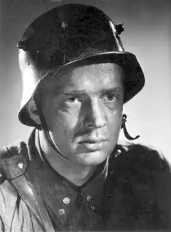 Vilho Johannes "Ville" Koskela is a fictional character in Väinö Linna's 1954 war novel The Unknown Soldier and the Under the North Star trilogy (1959–1962). In The Unknown Soldier, Koskela's military rank is initially that of a sergeant major, but he later rises to lieutenant. According to Väinö Linna, Vilho Koskela's role model was Nilsiä-born Einari Kokkonen.[1][2][3] Another officer who provided material for Koskela's character was a lieutenant named Niemelä, who fell in the aftermath of the Battle of Pertjärvi, and whom Linna also valued as a leader.[4]