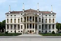 In 1588, the Barbarigo family had commissioned the building from a generally unknown Veronese architect, who was familiar with Andrea Palladio's works. The structure is imposing for its height and elaborate adornment of loggias and porticos. The villa is notable for its fresco decorations by artists such as Antonio Foler, Antonio Vassilacchi (the Aliense), and Luca Ferrari from Reggio.[1]