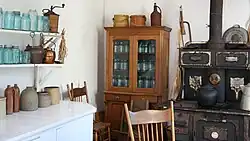 In the 1990s, the discovery of numerous photographs of Villa Louis from the late 19th century allowed the historical society to undertake a major restoration of the mansion and surrounding buildings. Using the collection of photographs and the estate's original furnishings, many of which were given to the site by the Dousman family heirs, the society was able to authentically restore the home to its appearance from 1893 to 1898.[4] The use of photographs and original furniture to so accurately restore the home brought national attention to the site in 1999, including a feature article in Victorian Decorating & Lifestyle magazine and an exhibit at the New York School of Interior Design.