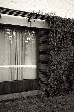 Aalto began work on the Villa towards the end of 1937, and was given an almost free hand by his clients.[2] His first proposal was a rustic hut modelled on vernacular farmhouses. Early in 1938, however, inspiration came from a radically different source, the residence named ‘Fallingwater’ designed by Frank Lloyd Wright, which had just received international acclaim thanks to an exhibition at the Museum of Modern Art in New York and publication in Life and Time magazines, as well as in architectural journals. Such was Aalto's enthusiasm for the design, Schildt tells us, that he tried to persuade the Gullichsens to build their home over a stream on Ahlström land a few miles out of Noormarkku.