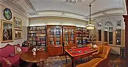 Haeckel, who died at the age of 85, had already during his lifetime regarded as a historically important biologist in Germany. The idea to preserve his own collections in a dedicated museum, as well as to preserve his archive for the future, was already formulated during his lifetime.[5] Following his death, the Ernst-Haeckel-Haus was founded in 1920 to serve as an archive and a museum.[1] It is one of the oldest institutes in Germany dedicated to the history of science, second only to the Karl-Sudhoff-Institut at Leipzig University.[4] Its first director was Heinrich Schmidt, who after the Nazi rise to power made a conscious effort to present Haeckel's legacy in a way which would appeal to Nazi ideology.[1] Similarly, his successor as director, Victor Julius Franz, continued to portray Haeckel in a light favourable to Nazism.[1] Following World War II, the villa and its associated institution became tied to the University of Jena. In 1965, a Chair for the History of Science was established at the institute and its scope has successively been broadened from its original focus on the life and achievements of Ernst Haeckel.[1]
