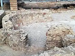 The nucleus of the later villa consists of a peristyle surrounded by residential rooms, typical of the late Roman villa. The most representative rooms are, on the west wing, the particularly large Aula Absidata ("apse hall") which recalls the Piazza Armerina basilica, and on the south wing a tri-apsidal room where the peristyle overlooked the sea. The Aula Absidata contained a mosaic floor now destroyed, but the mosaic floors of the peristyle and tri-apse are in excellent condition.[4] The east–west orientation of the Aula Absidata, different from the north–south axis of the peristyle, raises doubts about its function and dating, suggesting that it might have been a church built after the owner had converted to Christianity.