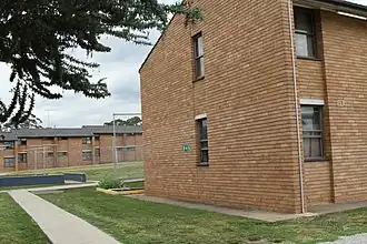 The site of the detention centre was previously known as the Villawood Migrant Hostel or Villawood Migrant Centre, built in 1949 to house migrants from post-war Europe to work in local industries.[1][2] The centre was run by Commonwealth Hostels Ltd, a non-profit company. By 1964 the centre housed 1,425 people, mainly from Britain and Europe.[3] By 1969 it was the largest migrant hostel in Australia, and was at that time housing migrants from Britain, The Netherlands, Denmark, West Germany, France, Czechoslovakia, Yugoslavia and Turkey.[4] In 1968 the centre was divided into two sections, one named the Villawood Migrant Hostel and the other named the Westbridge Migrant Hostel, which operated until 1984.[3]