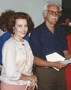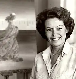 Holland attended high school in her hometown of Caguas. Her teacher, Victor Torres Lizardi, a painter from Caguas, taught her pen and ink along with watercolors.[5] After some spirited family discussions, Holland followed her artistic interests majoring in art at Nazareth Junior College in Bardstown, Kentucky (currently Spalding University).[4] She received her diploma on June 3, 1948. Upon graduation, Holland returned home and enrolled at the University of Puerto Rico, UPR. One of her art teachers was Professor Guillermo Sureda.[6] He took an interest in her and continued her education with watercolors. Sureda was from Spain and his wife, like Holland, was from Puerto Rico. Professor Fran Cervoni, another art teacher, taught design to her.[3] Professor Cristobol Ruiz introduced Holland to oils.[3] Holland graduated with a bachelor's degree in art on May 27, 1949.[4] The UPR recognized her design abilities and Cervoni helped Holland obtain a fellowship to the Fashion Institute of Technology in New York City[4] where she studied under various artists, including Arnold Burchess.[5] Holland received an Associate in Applied Science from FIT on June 11, 1964. During this time she divorced her first husband, Emigdio Buonomo.