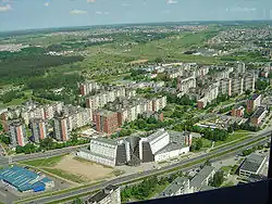 The Vilnius TV Tower (Lithuanian: Vilniaus televizijos bokštas) is a 326.5 m (1,071 ft) high tower in the Karoliniškės residential district of Vilnius, Lithuania. It is the tallest structure in Lithuania, and the 29th tallest self-supporting tower in the world. It belongs to the SC Lithuanian Radio and Television Centre (Lithuanian: AB Lietuvos radijo ir televizijos centras).