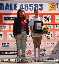 In January 2007 she won the 6 km race at the Montefortiana Turà in Monteforte d'Alpone.[6][7] She knocked more than four minutes off her best at the 2007 Maratona di Sant'Antonio in Padua and won the women's race.[8] She eased to victory at the Scalata al Castello 5 km and stated that she was keen to form part of the national marathon team for the 2007 World Championships in Athletics.[9] However, she missed out on the squad and instead had to make do with an appearance at the 2007 IAAF World Road Running Championships in Udine (where she was 24th).[1] The Florence Marathon offered her a chance gain a place for the 2008 Italian Olympic team and she won the race for a second year running.[10][11]