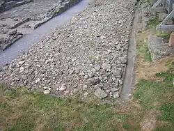 In 1937, Kenneth Steer undertook some excavations around the fort's defences as part of his archaeology degree at Durham University. There he found evidence for post-Roman buildings overlying these ditches, suggesting that the vicus continued as a small settlement after the fort was actively occupied. He was also able to identify an early Agricolan fort under a later one dating to about the 3rd century.[13] Further work continued in 1955 and between 1964 and 1972 when the bath suite was re-excavated and mostly cleared. The 1960s were also the period that the archaeological site came under the guardianship of Durham County Council. In 1971, rescue excavation at the northwestern end of Binchester Hall found around six successive layers of timber barracks.[14]