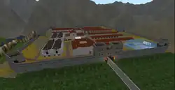 An extensive civilian settlement (vicus) existed to the north and west of the fort, the remains of which are buried under the pastures of Binchester Hall Farm. The southern part of the fort is now beneath Binchester Hall, while some of the defences were destroyed in a landslip in the 19th century. Part of the stone bridge on which Dere Street crossed the River Wear can still be seen when the river is low.[5] In 2007, several mausolea were found to the north of the vicus.
