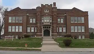 Vinton School was built as a fourteen-room elementary school in 1908 at 2120 Deer Park Boulevard in the Deer Park neighborhood of Omaha, Nebraska, United States. Designed by Omaha architect Frederick W. Clarke, Vinton School is the earliest and most elaborate example of a Tudor Revival-style school in Omaha.[3] Designated an Omaha Landmark in June 1990, the building was listed on the National Register of Historic Places in November 1989.[4]