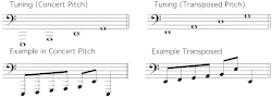 - ^ The existence of two basses, a smaller one and a larger one, was also a feature of the viol family, which had two types of violone tuned one fourth apart