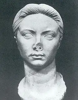 Despite Vipsania and Tiberius enjoying a happy marriage, Augustus ordered the two to divorce after the death of Vipsania's father, who was married to Augustus's daughter Julia the Elder.[3] Even though Tiberius wished to remain with Vipsania and held disdain for Julia for her purported unfaithfulness, Augustus engaged him to Julia in order to link Tiberius's growing power to the Julian family.[4] At the time of their divorce, Vipsania was pregnant with a second child, who did not survive.[3]