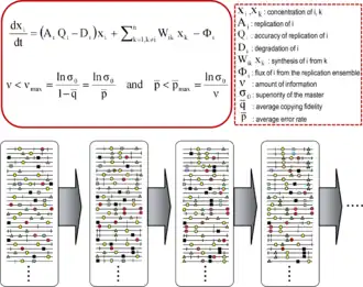 - ^ Eigen M, McCaskill J, Schuster P (1988). "Molecular Quasi-Species". Journal of Physical Chemistry. 92 (24): 6881–6891. doi:10.1021/j100335a010. hdl:11858/00-001M-0000-002C-84A7-C. S2CID 96727272.