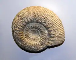| Fossil specimen of Virgatosphinctes species from Upper Jurassic | |