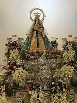 The namesake Marian title is also honored as the patroness of Camarena, Toledo. The image is venerated in the Church of San Juan Bautista, where it is enshrined in a Baroque altarpiece from the late Renaissance period, crafted by Mateo de Cibantos between 1652 and 1655. Her feast day is celebrated on August 15th, coinciding with the Feast of the Assumption of the Virgin Mary, during which the town holds its major annual festivities. The image also processes through the town on Carnival Sunday. The image is carried on a historic float that was once used in the coronation of King Louis I of Spain in the 18th century, adding royal and artistic value to its traditional processions.