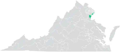 The district overlaps with Virginia's 10th and 11th congressional districts, and with the 8th, 9th, 10th, and 11th districts of the Virginia House of Delegates.[3]