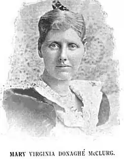 Mary Virginia Donaghe McClurg (1857 - April 29, 1931) was Regent-General of National Colorado Cliff Dwellings Association, one of the first white women to view the prehistoric cliff dwellings near Mesa Verde. The Mesa Verde National Park has been called the "Women's Park" because its creation was due almost solely to the work of two women, Virginia Donaghe McClurg and Lucy Peabody.[1]