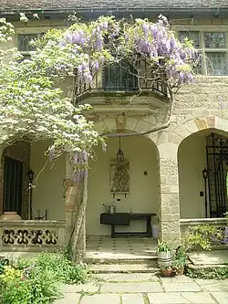 Virginia House is set in carefully planned landscape gardens, which contain a diversity of plants and plantings. Virginia Weddell hired the noted landscape architect Charles Gillette in 1927, and over some twenty years he built more than 8 acres (32,000 m2) of scenic gardens containing close to 1,000 types of ornamental plants—from formal spring displays to wisteria, roses, and sprawling hydrangeas that drape balconies and garden rails.[8] The first phase of the plan was to create an informal Garden Week tours are held in Virginia House gardens in the spring, attracting thousands of visitors annually.[4]