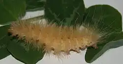 Spilosoma virginica is a species of moth in the subfamily Arctiinae occurring in the United States and southern Canada.[3] As a caterpillar, it is known as the yellow woolly bear or yellow bear caterpillar. As an adult, it is known as the Virginian tiger moth.