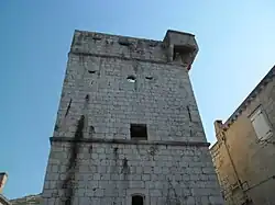 The Perasti tower, kaštil, was built of Vicko of Perast in Bay of Kotor, in 1617. He requested permission to construct from the general commissioner which he received on December 16, 1616. There is not much information about Vicko of Perast, the builder of the tower. The earliest document in which he is mentioned dates back to 1587 in which his family was also mentioned. He was always given the title Sir (ser, dominus). Vicko of Perast lived in the Vis settlement of Luka, in his own house close to the tower, and died in 1622. He built the tower on his own land as defence from himself and other Vis inhabitants against possible Ottoman attacks on the town. The castle walls are divided by horizontal garlands whilst there are openings for cannons and loopholes along the walls. There are square sentry boxes standing on consoles at the corners of the tower whilst acroterions adorn their roof part. The tower was entered from a door situated on the first floor, which connected to Perasti's house by means of a wooden bridge. As this was the only in the door the tower, all equipment was brought inside along the wooden bridge and through it. The tower was armed with small bronze cannons that are mentioned in documents in the 17th in the 18th century. It was forbidden to build walls, houses and other facilities around the tower that would impede the defensive action of the cannons situated within it.