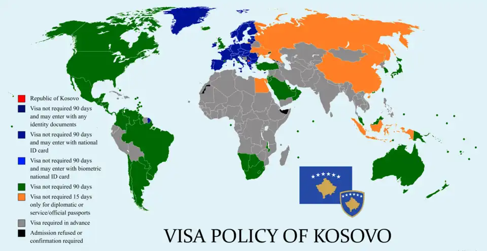 - ^ "Kosovo Visas - Embassies of the Republic of Kosovo". 7 December 2022.