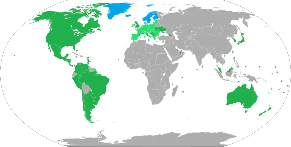 However, the Faroe Islands are not part of the European Union or the Schengen Area, so nationals of EU or Schengen countries, except for Nordic countries, do not have the right to reside in the Faroe Islands freely, and visas or resident permits issued for entering Schengen countries are not valid for travel to the Faroe Islands.[1][3][4] Specific visas for the Faroe Islands can be obtained in consular establishments of the Kingdom of Denmark, and their conditions are similar to those for Schengen visas.[1][3][4] Visas for the Faroe Islands are not valid for travel to the Schengen Area.[3][4] Most people travelling to the Faroe Islands would transfer in Denmark or another Schengen country, for which they need a Schengen transit visa, because the flights or boat to the Faroe Islands count as inside Schengen.[1]