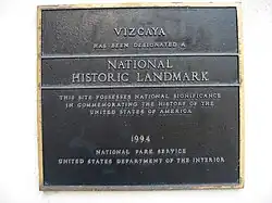 - ^ a b c d "Vizcaya". National Historic Landmark summary listing. National Park Service. Archived from the original on December 2, 2007. Retrieved June 21, 2008.