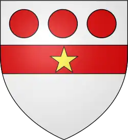 ![]() ![]() Argent, a fess gules in chief three torteaux | |
