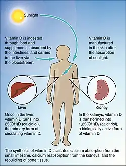 - ^ Holick MF (July 2007). "Vitamin D deficiency". The New England Journal of Medicine. 357 (3): 266–81. doi:10.1056/NEJMra070553. PMID 17634462. S2CID 18566028.